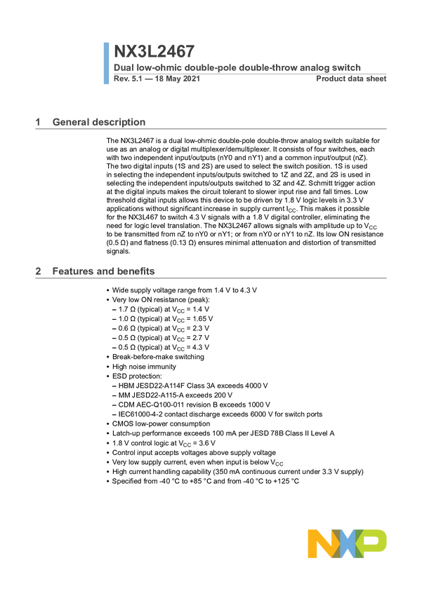 NX3L2467PW Dual low-ohmic double-pole double-throw analog switch
