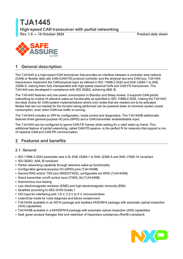 TJA1445ATK High-Speed CAN FD transceiver with partial networking [ASIL B]