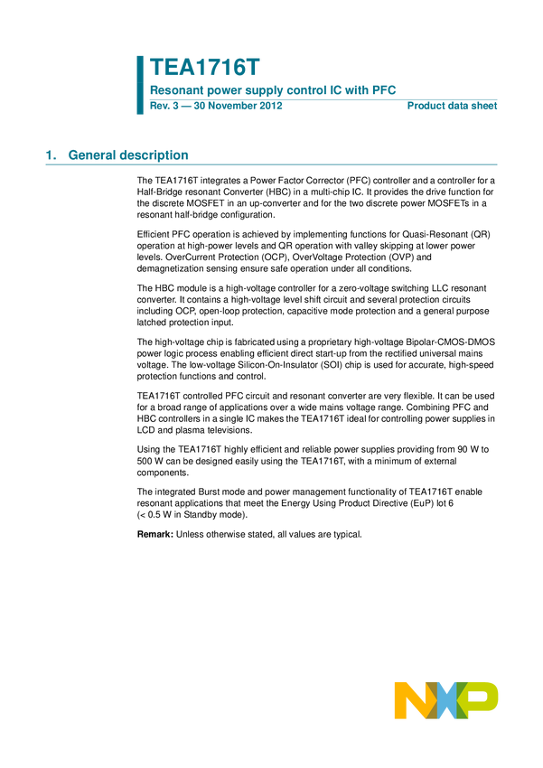 TEA1716T DCM/QR PFC + Resonant power supply control IC