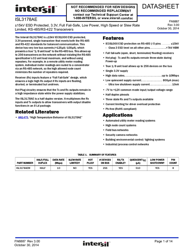 ISL3178AEMBZ-T, ISL3178AE