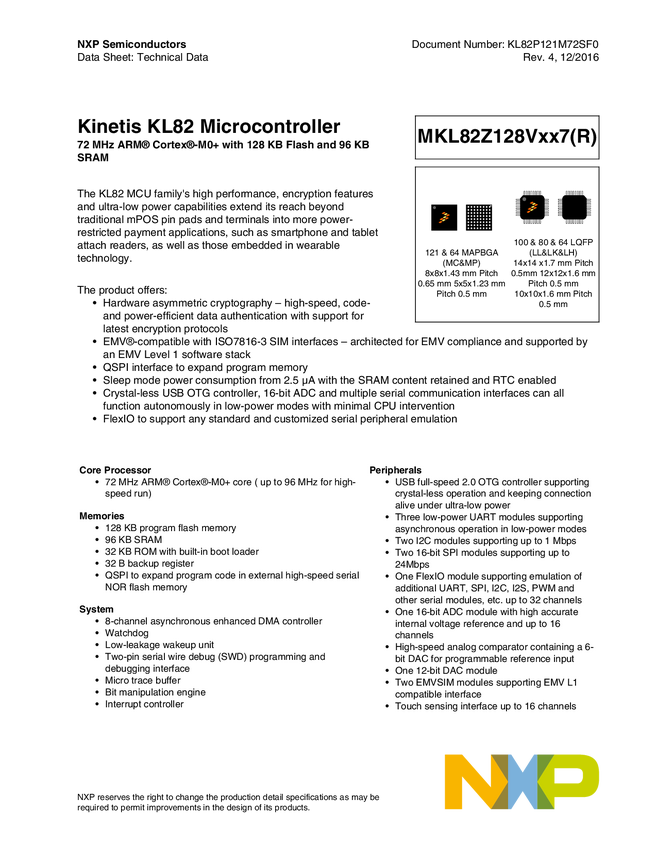 MKL82Z128VMP7, FRDM-KL82Z, MKL82Z128VLK7, MKL82Z128VMC7