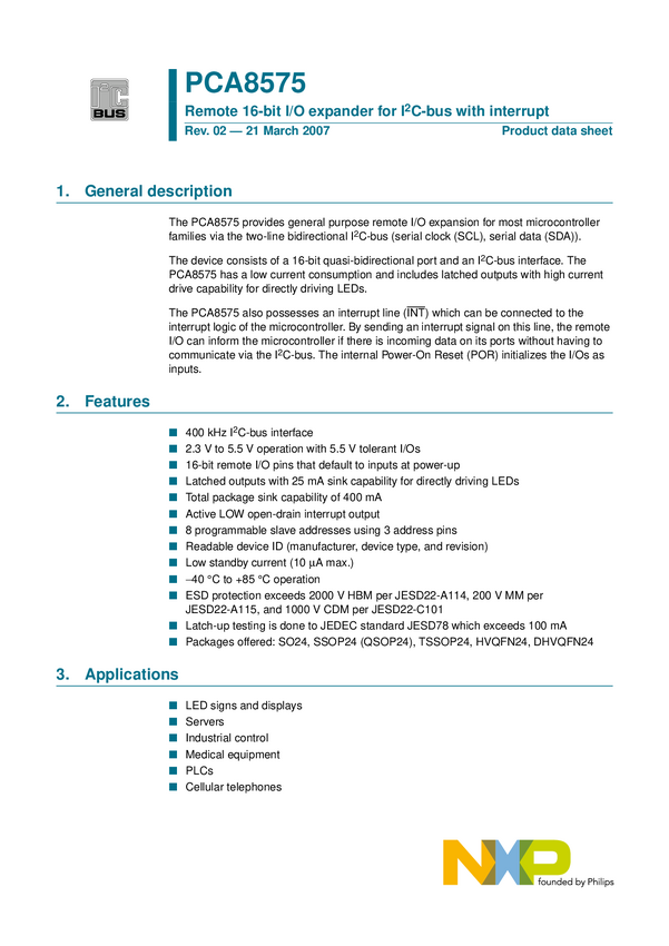 Remote 16-bit I/O expander for I2C-bus with interrupt