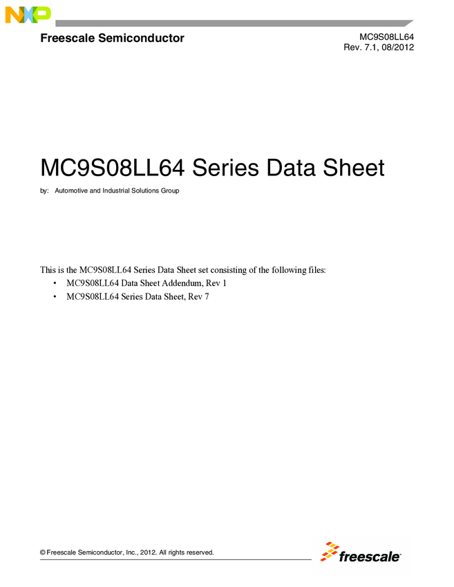 MC9S08LL64CLK S08LL 8-bit MCU, S08 core, 36KB Flash, 40MHz, QFP 64