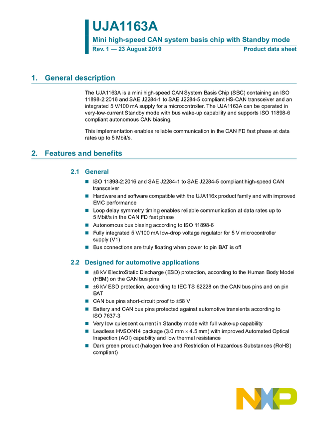 UJA1163ATK Mini high-speed CAN system basis chip with Standby mode