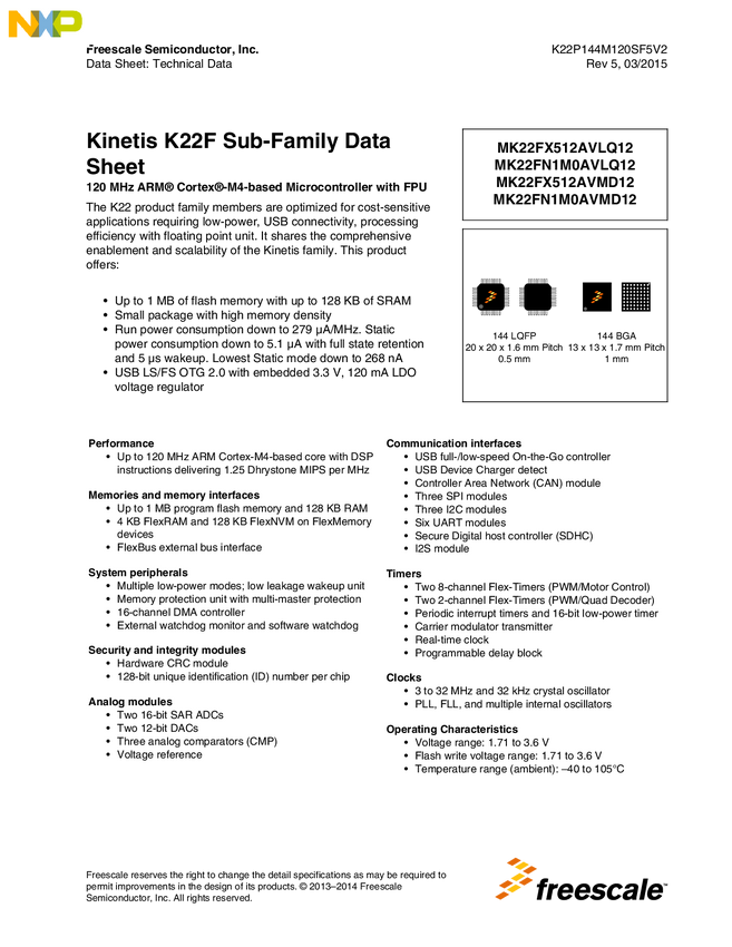 - MK22FN1M0AVMD12, MK22FN1M0AVLQ12, MK22FX512AVLQ12