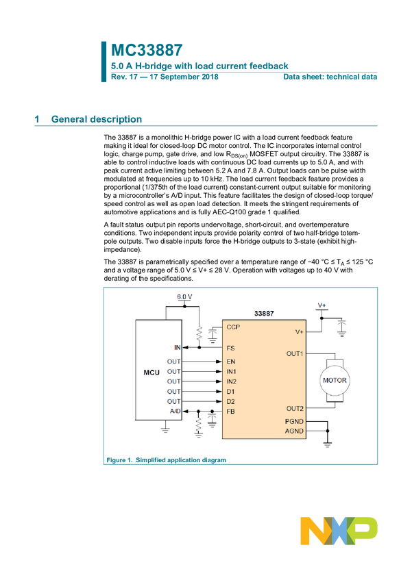 MC33887PFK H-Bridge, Brushed DC Motor Driver, 5-28V, 5A, Cur FB, Sleep, SM-5, PQFN 36