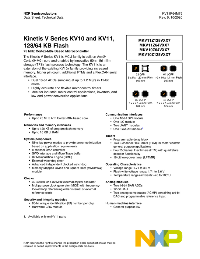 - MKV10Z64VFM7, MKV11Z128VLH7, MKV10Z128VLH7, MKV11Z64VFM7, MKV10Z64VLF7, MKV11Z64VLF7, MKV11Z128VFM7, MKV10Z128VFM7, MKV11Z128VLF7, MKV11Z64VLH7, MKV10Z128VLF7, MKV10Z64VLH7