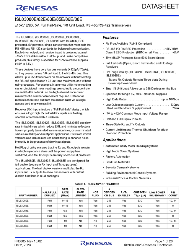 ISL83086EIUZ, ISL83086EIUZ-T, ISL83086EIBZ, ISL83086E