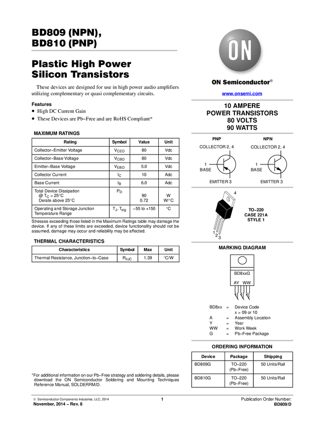 BD809 High Power PNP BipolarTransistor