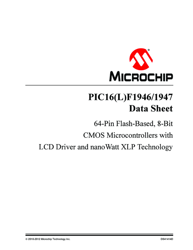 PIC16(L)F1946/47 64-Pin Flash-Based, 8-Bit CMOS MCUs w/ LCD Driver and nanoWatt (02/29/2012)