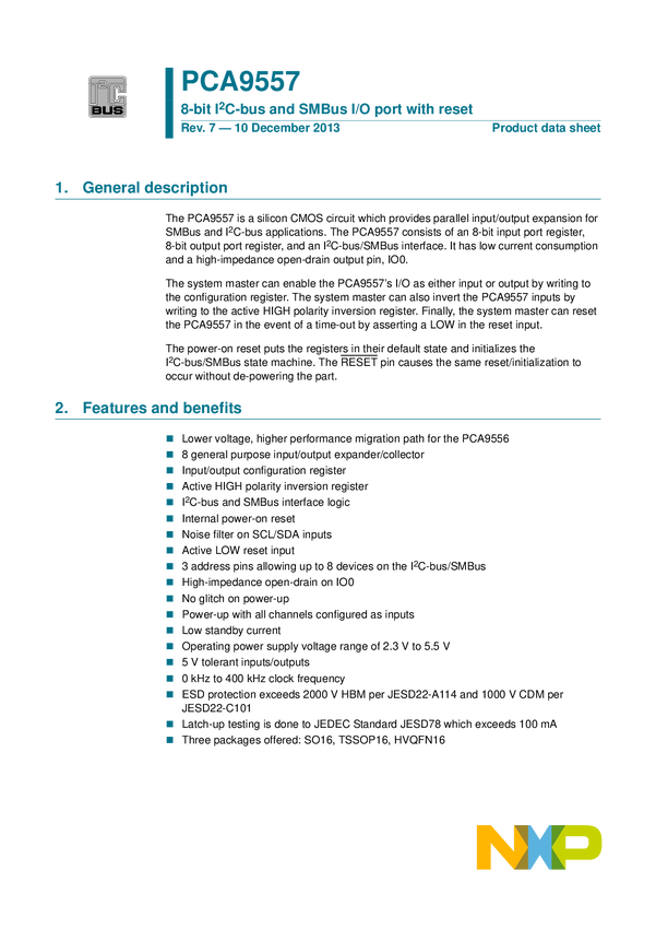 PCA9557PW 8-bit I2C-bus and SMBus I/O port with reset