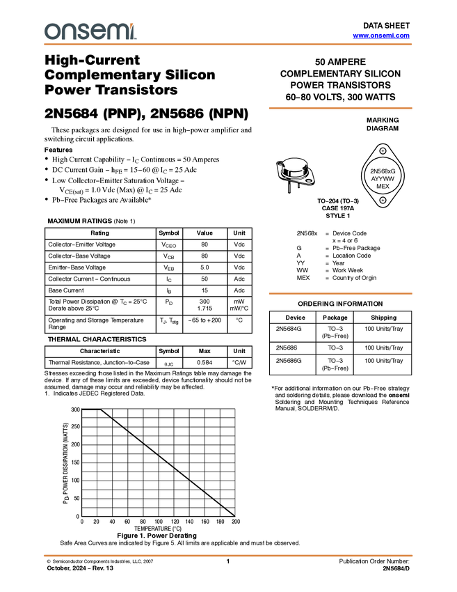 2N5684 50 A, 80 V NPN Bipolar Power Transistor