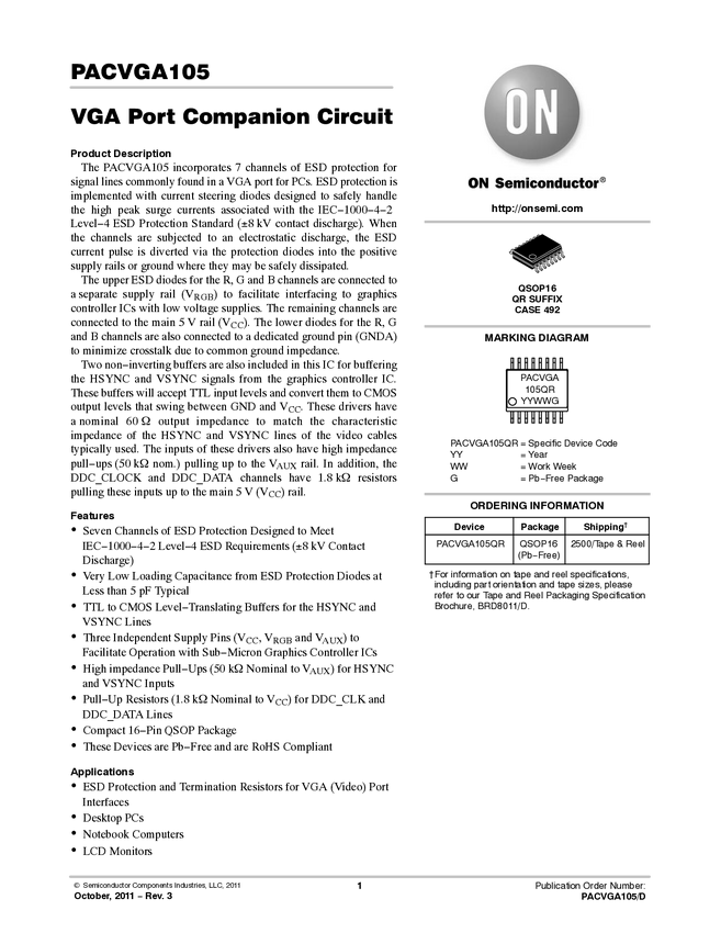 PACVGA105 ESD Protection Diodes, VGA Port Companion Circuit