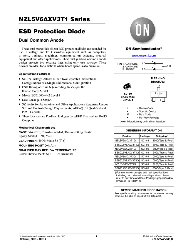 NZL7V5AXV3 ESD Protection Common Anode Diodes