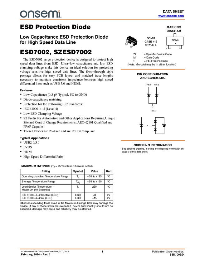 ESD7002 Low Capacitance ESD Protection for High Speed