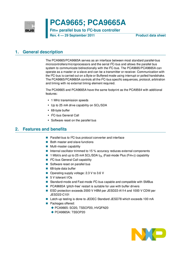 PCA9665APW Fm+ parallel bus to I2C-bus controller