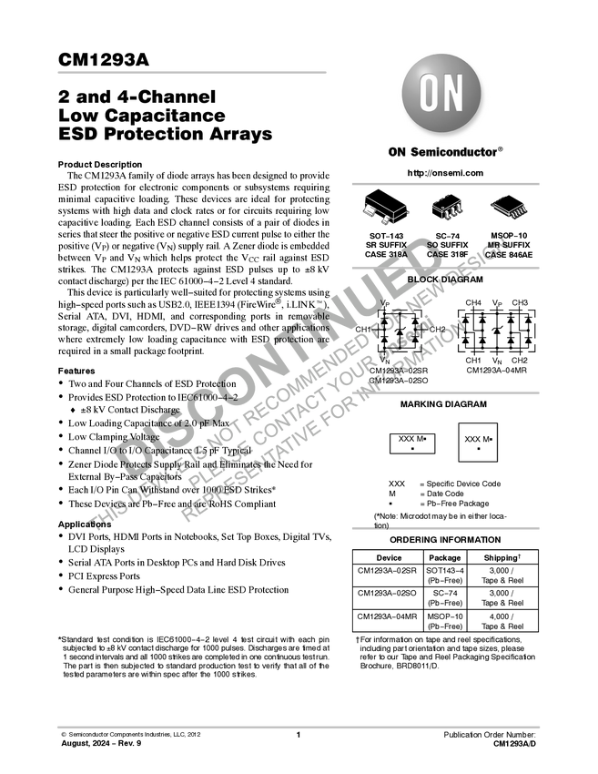 CM1293A ESD Protection Array, 2 and 4-Channel, Low Capacitance