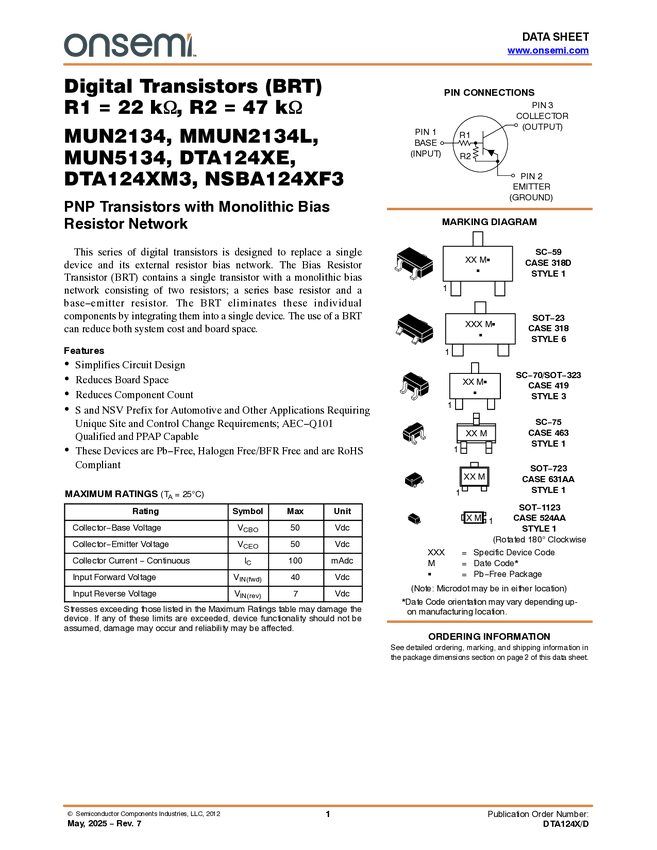 MUN5134, MUN2134, MMUN2134L, DTA124XM3, DTA124XE
