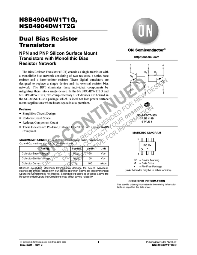 NSB4904DW1 Complementary Bipolar Digital Transistor (BRT)