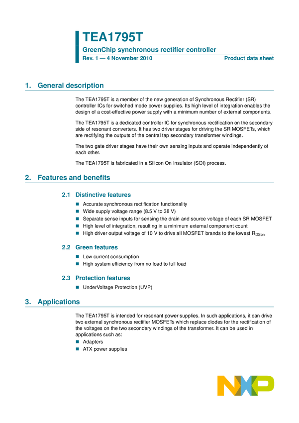 TEA1795T GreenChip dual Synchronous Rectifier controller