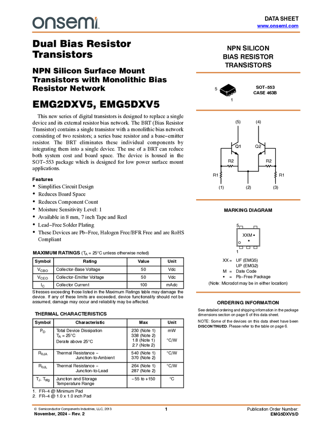 EMG2DXV5 Dual NPN Bipolar Digital Transistor (BRT)
