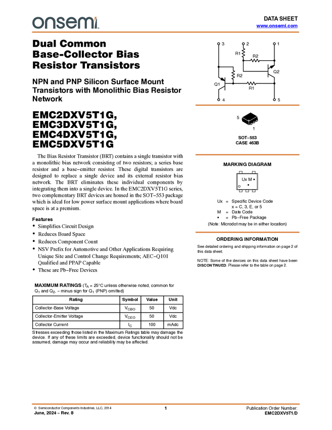 EMC4DXV5 Complementary Bipolar Digital Transistor (BRT)