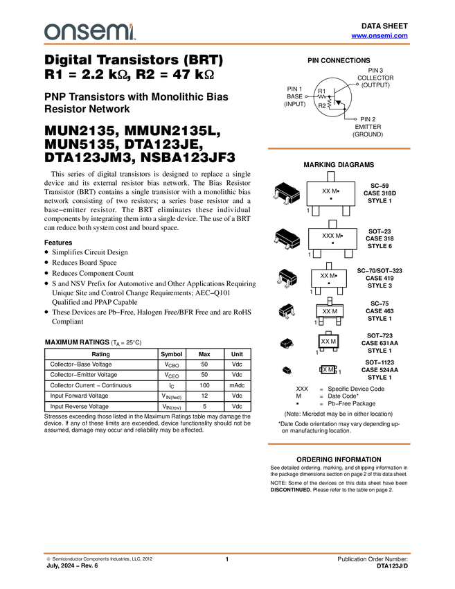 NSBA123JF3, MUN5135, MUN2135, MMUN2135L, DTA123JE