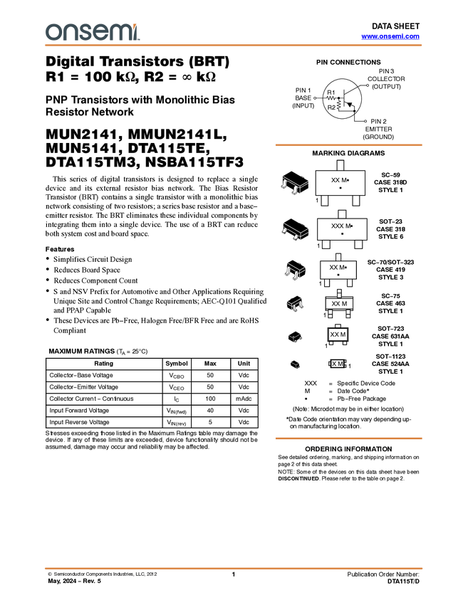NSBA115TF3, MUN5141, MUN2141, MMUN2141L, DTA115TM3