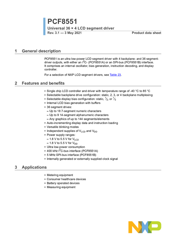 PCF8551ATT Universal 36 × 4 LCD segment driver