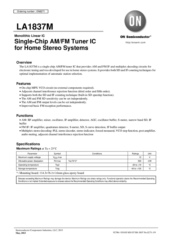 LA1837M AM Stereo AM/FM+MPX for Electronic Tuners and Post Amplifier