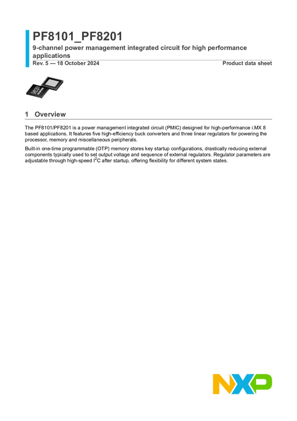 MC33PF8201A0ES Power Management IC, i.MX8, non-prog, 5 buck, 3 LDO, ASIL-B, Auto, QFN 56
