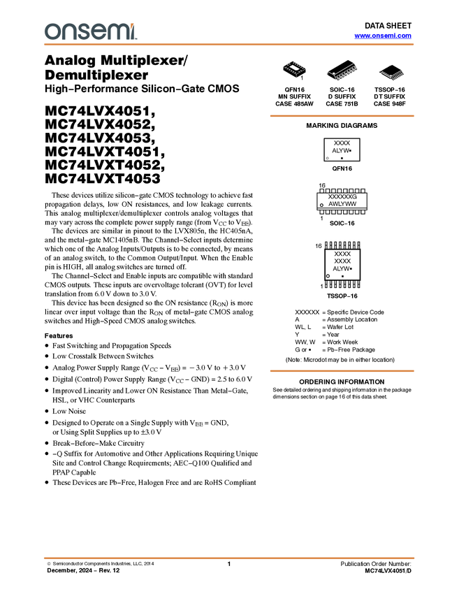 MC74LVXT4053, MC74LVXT4052, MC74LVX4053, MC74LVX4052, MC74LVX4051