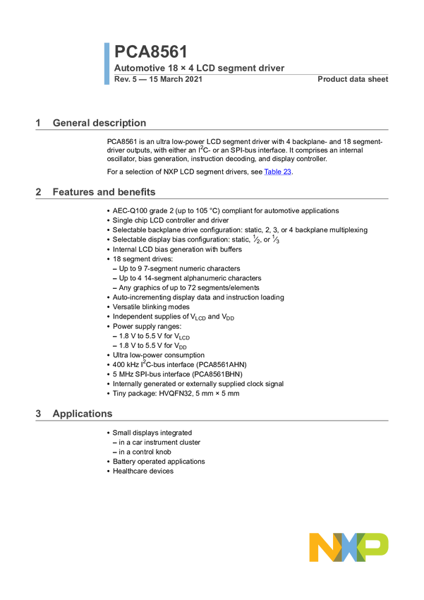 PCA8561BHN Automotive 18 x 4 LCD segment driver