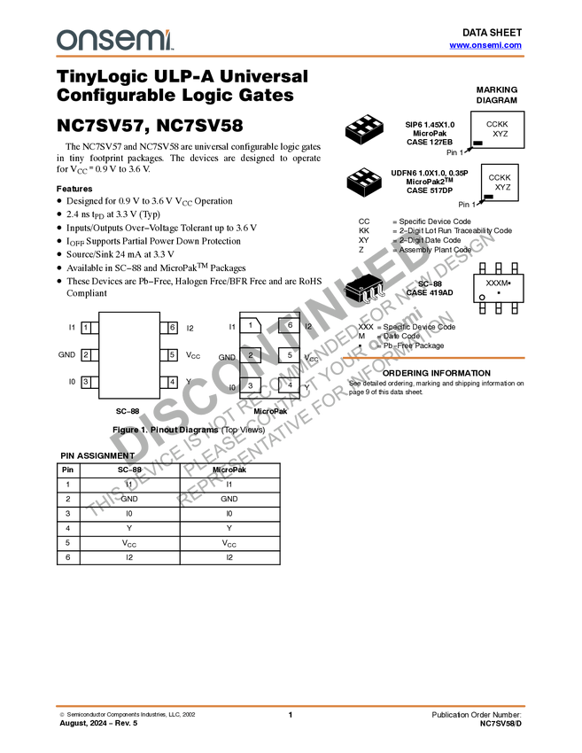 NC7SV57 TinyLogic ULP-A Universal Configurable 2-Input Logic Gates