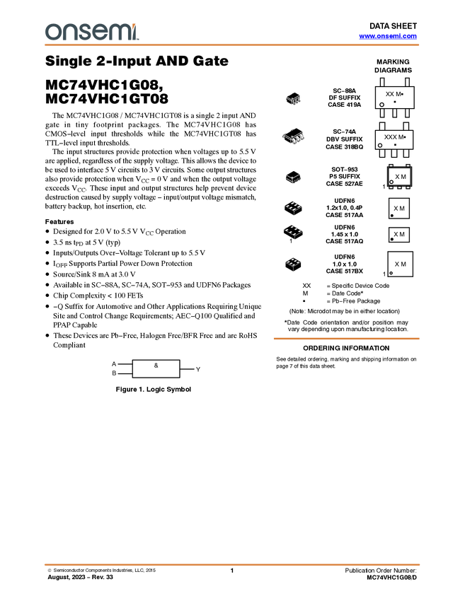 MC74VHC1G08 Single 2-Input AND Gate, TTL Level
