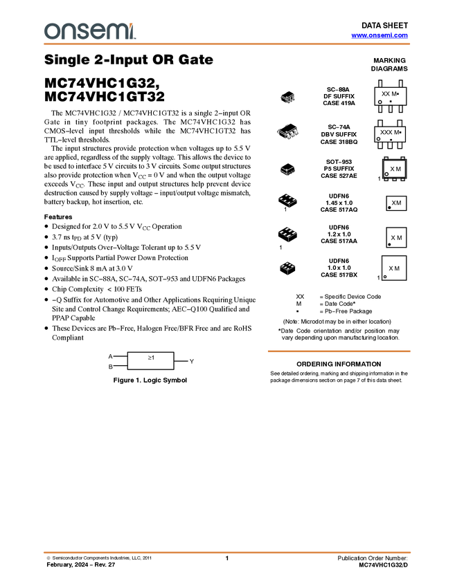 MC74VHC1G32 Single 2-Input OR Gate, TTL Level