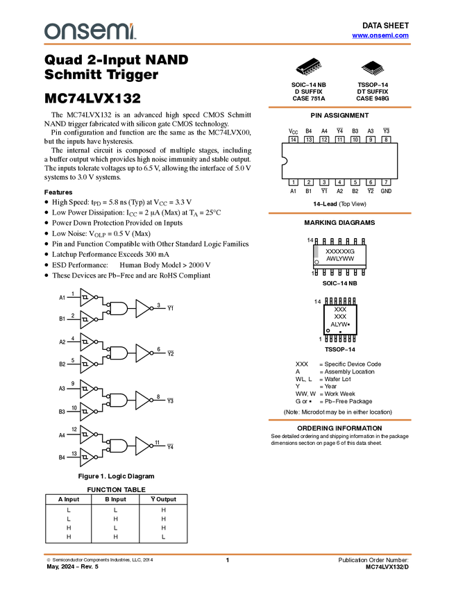 MC74LVX132 Quad 2-Input NAND Gate with Schmitt Trigger Input