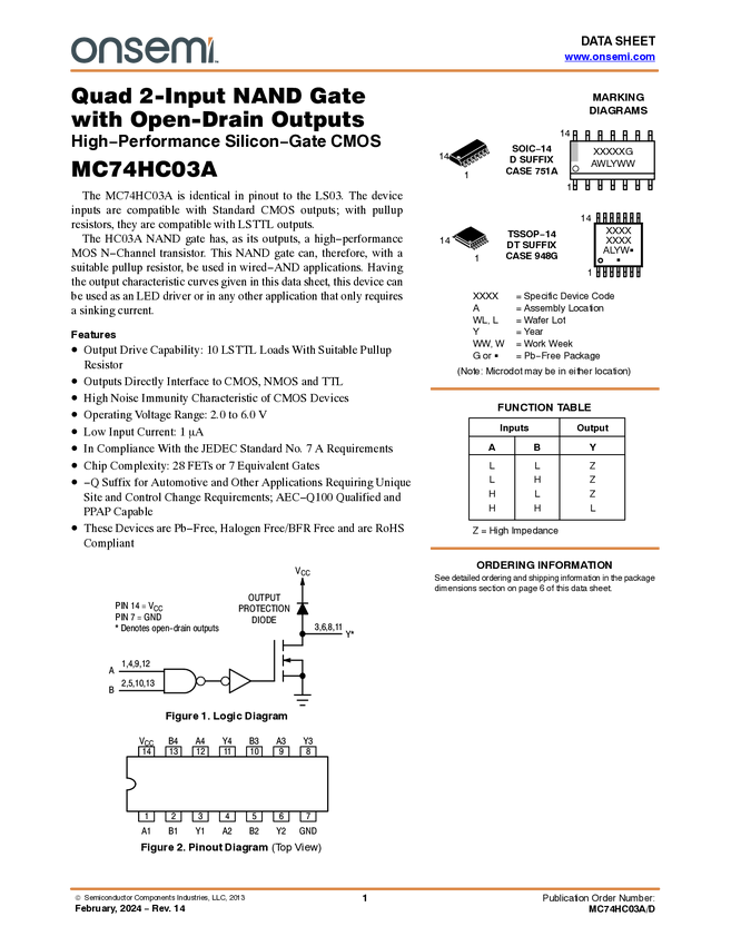 MC74HC03A Quad 2-Input NAND Gate with Open Drain Outputs