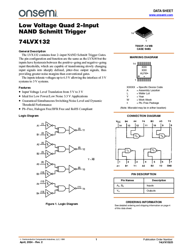 74LVX132 Low Voltage Quad 2-Input NAND Schmitt Trigger