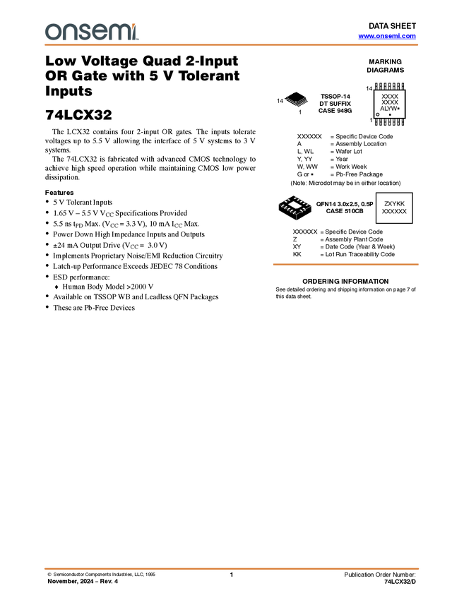 74LCX32 Low Voltage Quad 2-Input OR Gate with 5V Tolerant Inputs