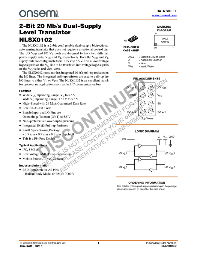 NLSX0102 2-Bit 20 Mb/s Dual-Supply Level Translator