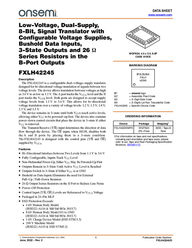 FXLH42245 Low Voltage Dual Supply 8-Bit Signal Translator with Configurable Voltage S...