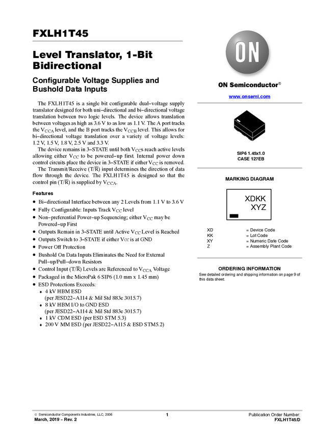 FXLH1T45 Low Voltage 1-Bit Bi-directional Level Translator with Configurable Voltage...