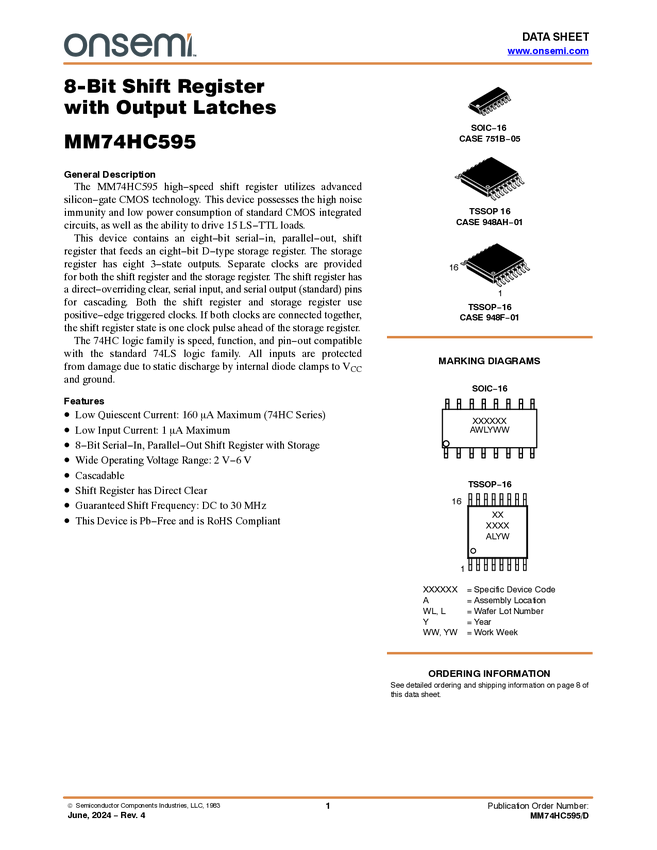 MM74HC595 8-Bit Shift Registers with Output Latches