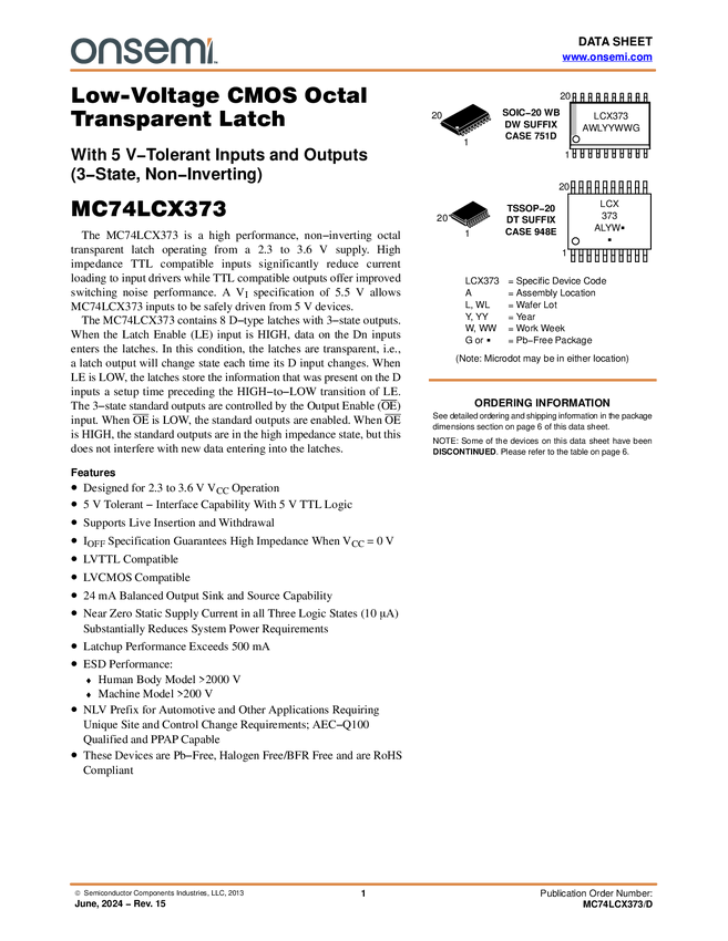 MC74LCX373 Low Voltage CMOS Octal Transparent Latch