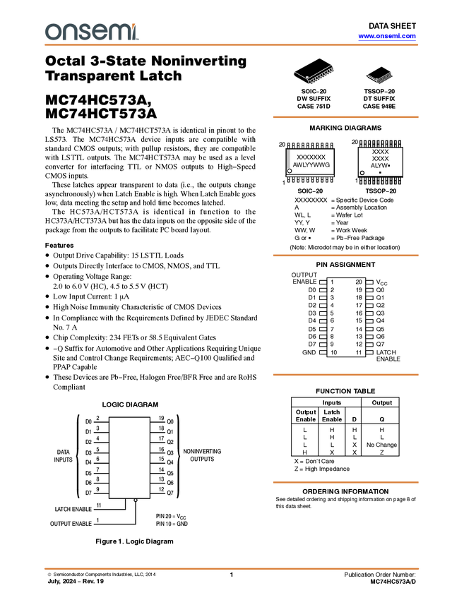 MC74HCT573A Octal 3-State Transparent Latch/Transceiver
