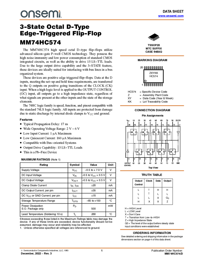 MM74HC574 3-STATE Octal D-Type Edge-Triggered Flip-Flop