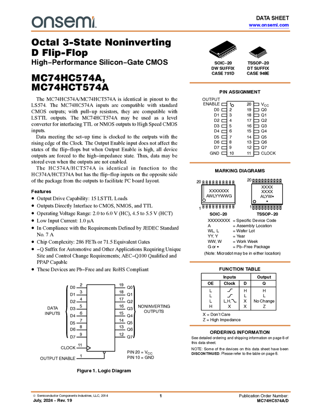 MC74HCT574A Octal 3-State Non-inverting D Flip-Flop