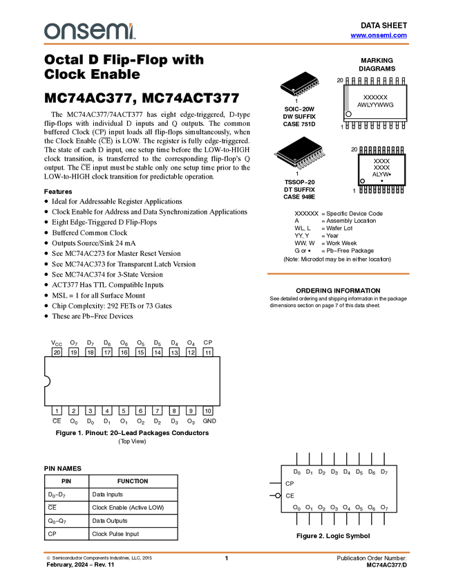 MC74AC377 Octal D Flip-Flop with Clock Enable