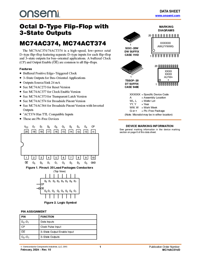 MC74AC374 Octal D Flip-Flop with 3-State Outputs